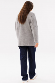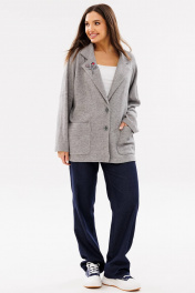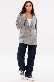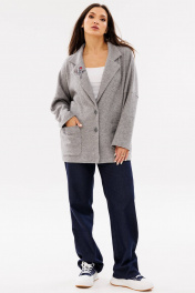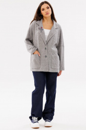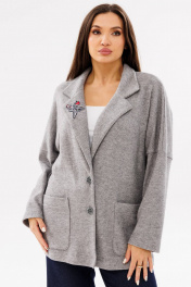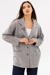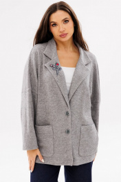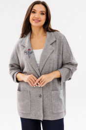 Женский трикотажный кардиган с воротником и накладными карманами Ma Сherie 1107 серый_меланж