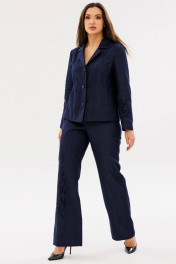 Женский жакет Ma Сhérie из джинсовой ткани. Жакет полуприлегаюшего силуэта. Воротник пиджачного типа, застежка центральная однобортная на три петли и пуговицы. Полочка с рельефами, в которых расположены функциональные карманы. Рукав втачной одношовный. На рукавах расположена дизайнерская вышивка. Жакет без подкладки. Обращаем ваше внимание, что возможна замена фурнитуры на аналогичную такого же качества. Наш жакет в комплекте с брюками 2067 составит стильный и комфортный костюм для офиса - модель 3085.