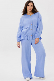 Ляняной бомбер Ma Сhérie свободного силуэта. Горловина округлой формы. Полочка с центральной бортовой застежой на петли и пуговицы. По переду расположены накладные карманы с клапаном. Спинка цельная. Рукав длинный втачной одношовный, низ рукава собран на широкую резинку, линия плеча спущена. Ниже линии талии выполнена кулиса из основной ткани для стягивания. Длина изделия по спинке 63-64,5 см в зависимости от размера, длина рукава 55 см от шва втачивания. С нашими брюками 2086 составит идеальный образ для прогулки на свежем воздухе с друзьями.