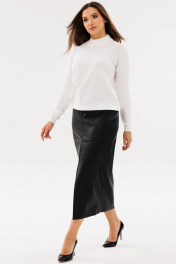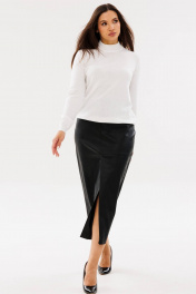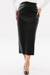 Длинная юбка Ma Сhérie из качественной экокожи. Пояс притачной, застежка спереди на молнию с гульфиком и петлю-пуговицу. Передняя половинка юбки со средним швом и подрезом ниже линии бедер. От подреза выполнен разрез на запах. Задняя половинка со средним швом и талиевыми вытачками. Длина изделия по боковому шву 99 - 100,5 см в зависимости от размера. На фото юбка с нашим жакетом 1111, с которым можно составить современный и стильный образ для офиса - модель 3091.