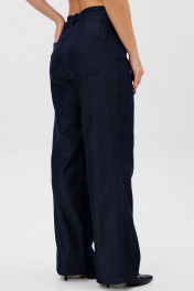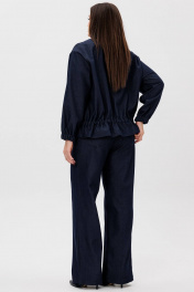 Джинсовый костюм Ma Сhérie свободного силуэта, состоящий из жакета и брюк. Жакет свободный, горловина округлой формы. Полочка с центральной бортовой застежой на петли и пуговицы. По переду расположены накладные карманы с клапаном. Спинка цельная. Рукав длинный втачной одношовный, низ рукава собран на широкую резинку, линия плеча спущена. Ниже линии талии выполнена кулиса с завязкой из основной ткани. Длина изделия по спинке 63-64,5 см в зависимости от размера, длина рукава 55 см от шва втачивания. Брюки-палаццо, длинные. Пояс притачной со шлевками, застежка на молнию с гульфиком и петлю-пуговицу. Передние половинки цельные, в боковых швах функциональные карманы с диагональным входом. Задние половинки цельные с накладными карманами. Длина по боковому шву 114-115 см в зависимости от размера. Идеальный образ для прогулки на свежем воздухе с друзьями. Жакет и брюки можно приобрести раздельно. Модели 1146 и 2083 соответственно.