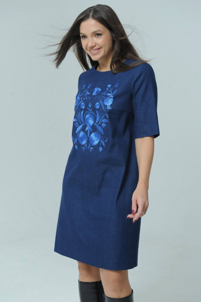 Стильное джинсовое платье Ma Сhérie длиной миди. Перед цельный с нагрудными вытачками и с декоративной дизайнерской вышивкой. Горловина округлой формы, обработана обтачкой. Спинка со средним швом, застёжка на навесную петлю и пуговицу по горловине. Рукав одношовный втачной, длиной до локтя. Длина изделия 93-95 см в зависимости от размера, длина рукава 32,5 см. Выбирайте наше стильное платье для вечеринки или домашнего торжества.