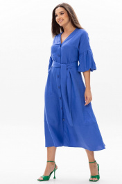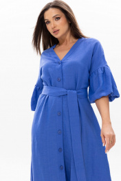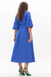 Льняное длинное платье Ma Сhérie свободного силуэта. ВырезV-образный, застежка центральная на петли и пуговицы. Спинка с центральным швом, спереди и сзади идут подрезы в нижней части платья. Рукав одношовный длиной до локтя, линия плеча спущена. Длина изделия 126 см, длина рукава от горловины 51 см. Комфортное летнее платье как для торжественных мероприятий, так и для повседневного использования.