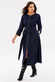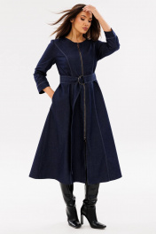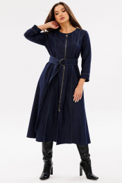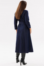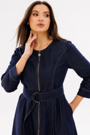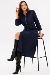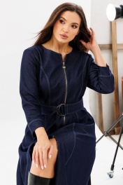 Модное джинсовое платье Ma Сhérie длиной миди. Перед с рельефным швом, выходящим из проймы. Горловина округлой формы, обработана обтачкой. Застежка центральная на молнию. Спинка с центральным швом и рельефным швом, выходящим из проймы. Рукав одношовный втачной длиной 3/4. Швы платья фрагментарно отстрочены декоративной нитью контрастного цвета. В комплект идет пояс из основной ткани. Длина изделия 124 см, длина рукава 52 см. Платье будет актуально на любом корпоративе или домашнем торжестве, а так же в повседневном использовании