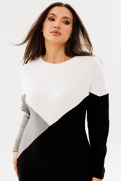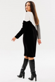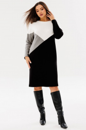 Стильное трикотажное платье Ma Сhérie полуприлегающего силуэта длиной миди. Горловина лодочка. Перед и спинка платья с косыми подрезами. Спинка с центральным швом. Рукав спущенный. Платье идеально для офиса, а так же подойдет для повседневного применения.