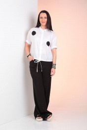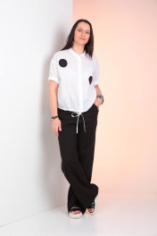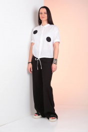 Комплект из блузы и брюк из текстиля с регулируемым поясом Ma Vie М625ч черный_и_белый