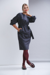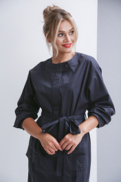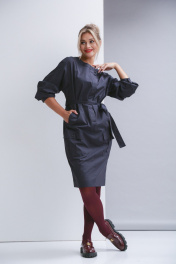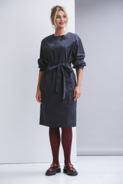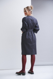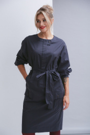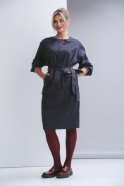Платье свободного силуэта с рубашечным рукавом без воротника. По полочке намладные карманы с клапаном и карманы в в - швах. По спинке шлица. Ширина платья по талии регулируется поясом.