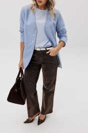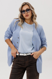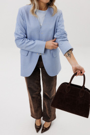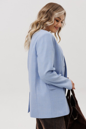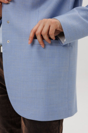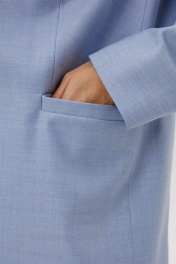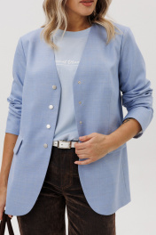 Жакет из полушерстяной ткани прямого силуэта ,без воротника на подкладке. Рукав втачной. По переду обработаны карманы с клапаном. Застежка на кнопки.