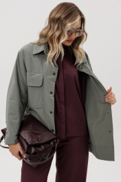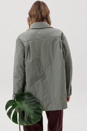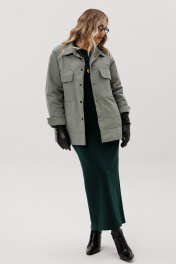 Стеганая рубашка из хлопчатобумажной ткани прямого силуэта. Воротник со стойкоа, рукав втачной. По переду накладные карманы с клапаном. По спинке декоративная вышивка.