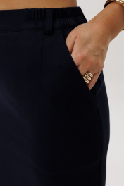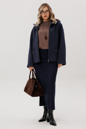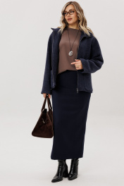 Костюм двухпредметный, состоит из джемпера и юбки. Джемпер свободного кроя с длинным рукавом. По низу широкая подгибка. Юбка прямиго силуэта на подкладке. По переду в боковых швах карманы. Застежка по центру задней половинки на потайную тесьму -молнию По низу среднего шва задней полвинки шлица. Линия талии регулируется резинкой.