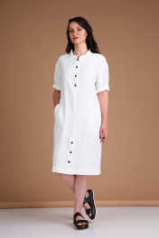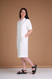 Платье из льна, прямой силуэт, приспущенное плечо, застежка на кнопки Ma Vie М178/1 белый
