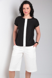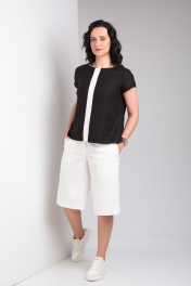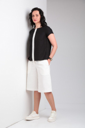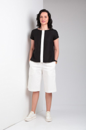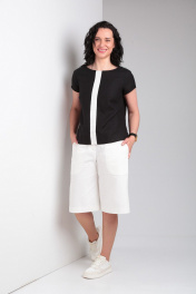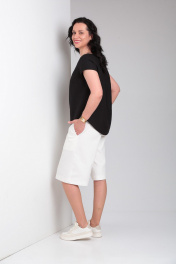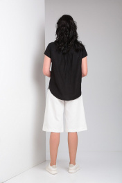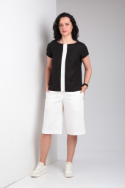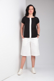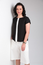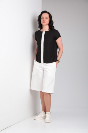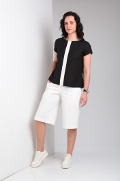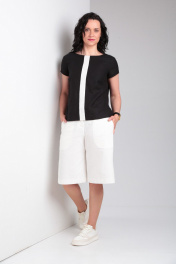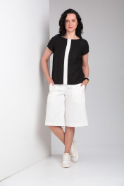 Лененная блуза с коротким рукавом и контрастной деталью, шорты с карманами Ma Vie М649 белый,черный