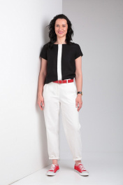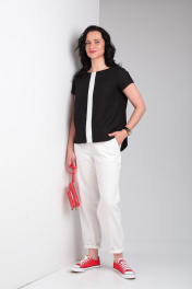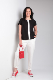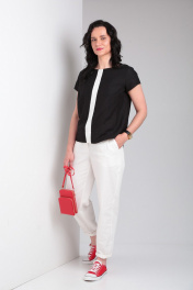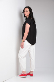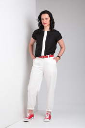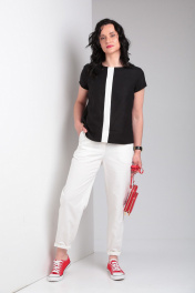 Комплект блуза свободного кроя и зауженные брюки из джинсовой ткани Ma Vie М650 белый,черный