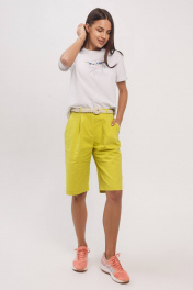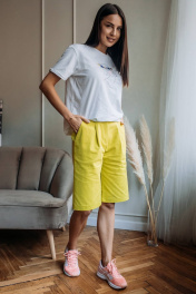 Летние свободные шорты с карманами и защипами из хлопковой ткани Madech 20161 лимонный
