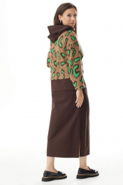 Коричневый комплект худи и юбки из трикотажа Магия моды 2319 зеленый_ шоколад