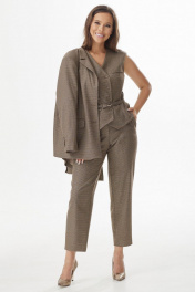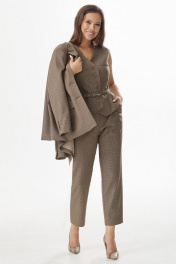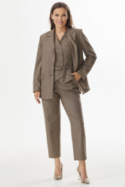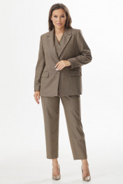 Элегантный комплект из удлиненного жакета, жилета и брюк Магия моды 2331 коричневый