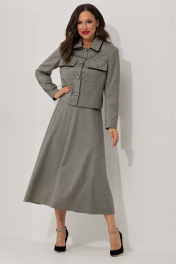 Комплект жакета, топа и юбки из тканевой с пайетками Магия моды 2528 серый