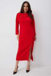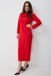 Элегантное и стильное платье миди полуприлегающего силуэта. Выполнено из приятного к телу комфортного гладкого трикотажного полотна. Рукав втачной, полной длины. Украшением платья являются функциональные тесьмы молнии. С их помощью можно стильно уложить воротник и отрегулировать вырез платья. Из лаконичного базового платье легко трансформируется в стильное и сексуальное. Длина платья от плечевого шва 127см. Длина рукава 60см.
