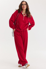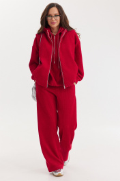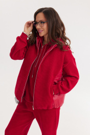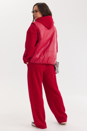Стильный и уютный комплект из утепленного жилета, худи и брюк, выполненных из фактурного трикотажного полотна (штрукс). Жилет свободного прямого кроя с центральной застежкой на металлическую молнию. Горловина обработана стойкой. Перед жилета выполнен из трикотажного полотна, спинка выполнена из плащевой ткани. Жилет дополнен удобными боковыми карманами. Худи свободного прямого кроя со слегка спущенным рукавом. Дополнено уютным капюшоном и застежкой на металлическую молнию. Для придания формы по низу расположена кулиска на резинке с фиксаторами. Так же худи дополнено удобными карманами. Брюки прямого свободного кроя, с притачным поясом, дополненным эластичной тесьмой. Посадка средняя. По бокам брюки дополнены удобными карманами. Длина жилета от плечевого шва 64 см. Длина худи от плечевого шва 60 см. Длина рукава 61 см. Длина брюк по боковому шву 106 см