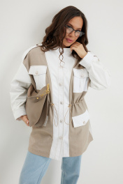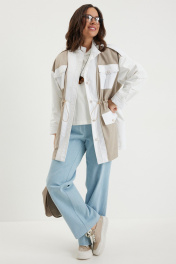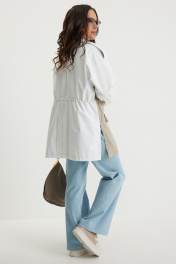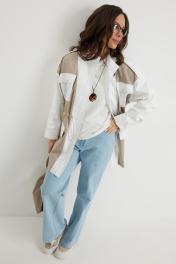 Стильный комплект из легкой парки и брюк из джинсовой ткани. Парка свободного кроя over, на подкладке, с центральной застежкой на красивые пришивные пуговицы. Горловина обработана стойкой. Выполнена из двух видов ткани: костюмной ткани с редкими мерцающими пайетками и плащевой ткани. По талии парка дополнена кулиской с эластичной тесьмой и фиксаторами, за счет которой можно формировать различный силуэт. Джинсы прямого классического кроя с застежкой гульфик на пуговицу и металлическую молнию. Посадка средняя. Дополнены удобными боковыми и задними карманами. Длина парки от плечевого шва88см. Длина рукава 60см. Длина брюк по боковому шву 105см.