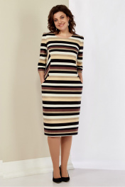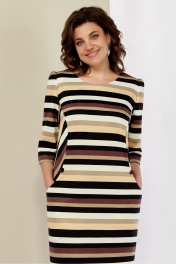 Демисезонное мультиколорное платье из трикотажа с карманами Магия Стиля М-5752 полосы