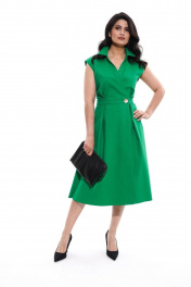Платье расклешенное на запах с поясом и карманами MAKKI 16/22 зеленый