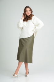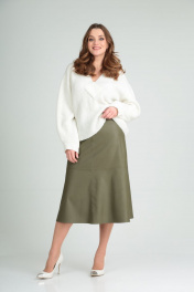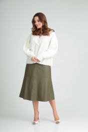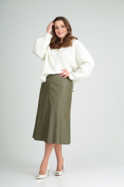 Демисезонная зеленая трапеционная юбка из экокожи MALI 221-109 олива