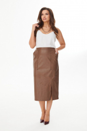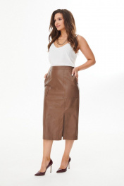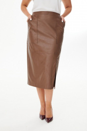 Юбка из экокожи с горизонтальным рельефом и разрезом MALI 223-050 коричневый