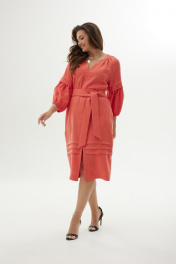 Платье прямого кроя с карманами и декоративными складками MALI 424-010 коралл