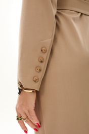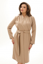 Платье прямого силуэта. По переду отрезное по линии талии. Лиф платья имитирует запах. Горловина с цельновыкроенной стойкой. по плечевым швам сборка. По спинке средний шов с застежкой на молнию, снизу шлица. Рукав втачной, зауженный книзу.