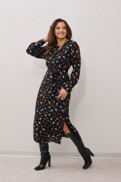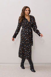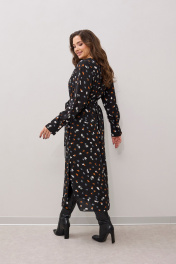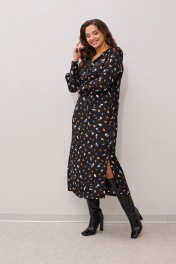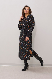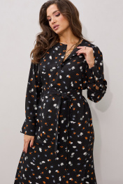 Платье прямого силуэта с поясом и длинным рукавом из текстиля MALI 424-044 черный