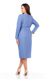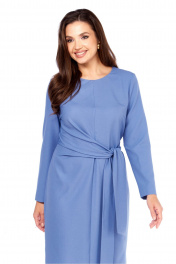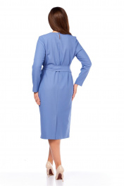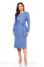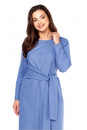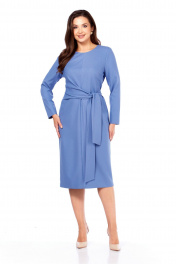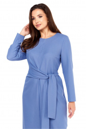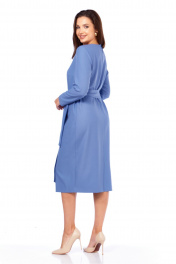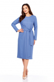 Платье полуприлегающего силуэта, слегка зауженное к низу. Спинка со средним швом и шлицей. Горловина округлой формы, по спинке с застёжкой на пуговицу и навесную петлю. Рукав длинный втачной. По переду средний шов, нагрудные вытачки, на уровне талии декоративные складки, переходящие в пояс.