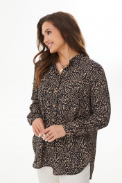 Демисезонная черная блуза из легкой ткани с накладными карманами MALI 623-064 черно-бежевый - фото 1