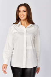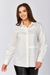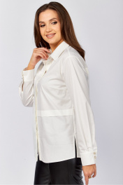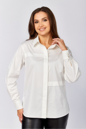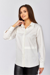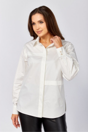 Хлопковая блузка-рубашка прямого силуэта. Рукав длинный рубашечный на манжете, воротник отложной рубашечный. По полочкам и спинке горизонтальные застроченные декоративные складки В боковых швах по низу разрезы