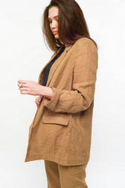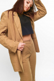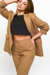 Летний костюм из льна: жакет и брюки прямого кроя MALI 722-020 миндаль