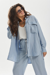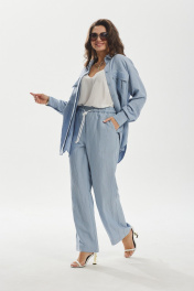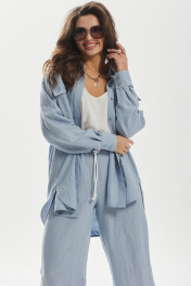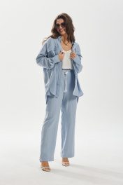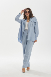 Комбинированный леняной брюк и рубашки оверсайз MALI 724-021 голубой