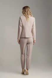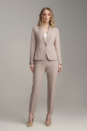 Жакет женский на подкладке, прилегающего силуэта. По переду вытачки и прорезные карманы в рамку. Спинка разрезная с вытачками. Рукав втачной, двухшовный. Воротник отложной. Застёжка на одну петлю и пуговицу.