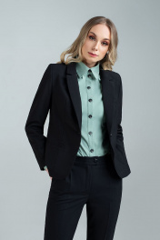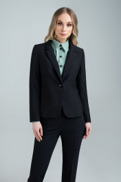 Жакет женский на подкладке, прилегающего силуэта. По переду вытачки и прорезные карманы в рамку. Спинка разрезная с вытачками. Рукав втачной, двухшовный. Воротник отложной. Застёжка на одну петлю и пуговицу. Длина до середины бедра 64 см.