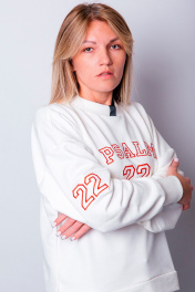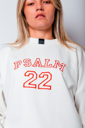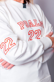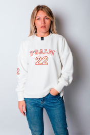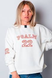 Свитшот женский универсального прямого силуэта свободного кроя. Благодаря прямому крою свитшот отлично подходит разным типам фигур, хорошо сидит и не стесняет движений. Вырез горловины круглый с притачной планкой, рукава длинные одношовные с трикотажной манжетой по низу. Принт машинная вышивка ""Psalm 22""/""Псалом 22"".
