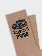 рис.3552 Носки мужские, классические высокие с рисунком в виде джипа и надписью.