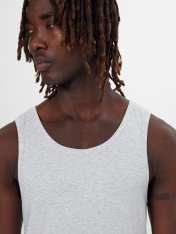 Серая мужская нательная майка — это базовый комфорт для повседневной носки. Модель выполнена из мягкой кулирки, которая нежно прилегает к телу, позволяет коже дышать и не теряет форму после стирок.<br>_x000D_ <br>_x000D_ Облегающий силуэт до линии бедер обеспечивает аккуратную посадку без складок. Круглая горловина и проймы обработаны мягкой окантовкой, которая предотвращает натирание. Низ майки аккуратно подогнут — это продлевает срок службы и сохраняет опрятный вид._x000D_ Майка идеальна под рубашки, для спорта или дома. Если вы ищете, где купить нательную майку, которая сочетает натуральность, качество и незаметность под одеждой, эта модель станет верным выбором._x000D_