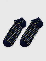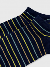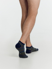 Короткие носки мужские с рисунком в виде полосок — отличная возможность внести разнообразие и поднять настроение в праздники. Изготовлены из гребенного хлопка - пряжи высочайшего качества, мягкой, тонкой, но прочной. Натуральные волокна отлично пропускают воздух, позволяя коже дышать, и впитывают влагу, дарят ощущение комфорта в течение всего дня. Благодаря небольшому количеству эластана в составе, носки хорошо облегают стопу и сохраняют форму даже после множества стирок. Мягкая эластичная резинка надежно удерживает носки на ноге, но не давит. Пятка и мысок дополнительно усилены, что гарантирует защиту от протирания и повышенную износостойкость — мужские носки с принтом прослужат долго. Лучший выбор на каждый день. Рекомендуем!