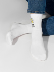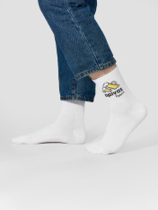 Рис.3106. Мужские носки, средней длины с резинкой на поголенке, рисунком и надписью "Apivas будет?".