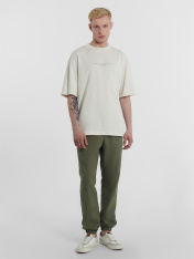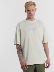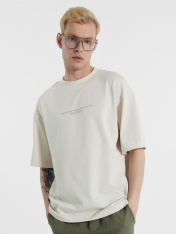 Свободная футболка мужская из 100% хлопка с печатью в виде цитаты из книги «Любовь во время чумы» Габриэля Гарсиа Маркеса — «Улыбайся, не доставляй беде удовольствия.». Горловина круглой формы из рибаны, рукава короткие, линия плеча спущена. Оптимальна для носки в любое время года. Универсальная и прекрасно сочетается со многими вещами в гардеробе. Отличный вариант для создания оригинальных повседневных образов. Дополнить можно стильным низом из базовой коллекции для мужчин.