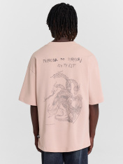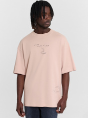 Мужская футболка свободного кроя с круглой горловиной и спущенной линией плеча обеспечит максимальный комфорт в повседневной носке. Изделие выполнено из нежной кулирки, которая представляет собой мягкий и дышащий хлопковый материал. Такая ткань отлично пропускает воздух и позволяет коже дышать, что особенно важно в жаркую погоду. Кулирка также известна своей прочностью и способностью сохранять форму даже после многочисленных стирок, что делает футболку долговечным элементом вашего гардероба._x000D_