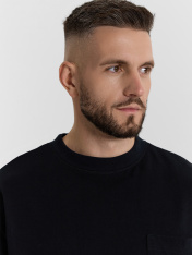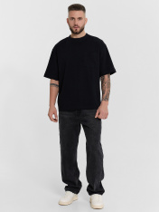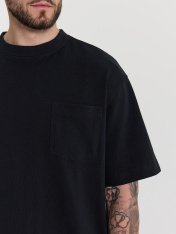 Футболка свободная укороченная, оверсайз. Горловина округлой формы обработана обтачкой из рибаны. Рукава втачные, корткие. Линия плеча спущена. На детали переда накладной карман (мод 111899-1). Нижние срезы футболки и рукавов обработаны швом вподгибку._x000D_ _x000D_ _x000D_ _x000D_ _x000D_