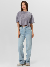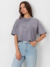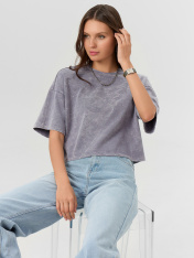 Укороченная хлопковая футболка из полотна кулирка. Силуэт свободный, оверсайз. Горловина круглой формы. Плечо спущено, пройма углублена – это делает движения максимально комфортными. Рукава длиной до локтя или чуть выше. Стильная модель!