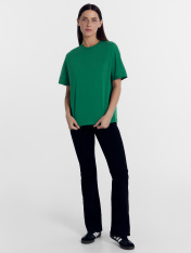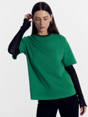 Стильная футболка женская из трикотажной кулирки. В составе изделия 100% хлопка. Натуральный материал этой модели хорошо пропускает воздух, слегка тянется и не сковывает движений. Вырез круглой формы. Свободу движений гарантируют спущенная линия плеча и углубленная пройма. Рукава широкие, чуть выше локтя. Классическая оверсайз футболка — это базовый элемент одежды, ее можно комбинировать с чем угодно. Выбирайте ее для отдыха, прогулки, а также для занятий спортом. Ее можно носить со множеством других вещей. Широкий размерный ряд, есть модели plus-size для девушек с формами. Порадуйте себя и своих близких практичными подарками от Mark Formelle!