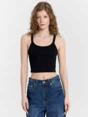 Топ женский прилегающего силуэта из трикотажного полотна рибана - идеальный выбор для стильных и модных девушек. Его особенностью является уникальный фигурный вырез горловины, который добавляет изысканности и женственности этой модели. Имеет тонкие бретели, которые придают ему легкую и воздушную нотку. Они позволяют выгодно подчеркнуть линию плеч и декольте, при этом создавая очень элегантный образ. Благодаря укороченному крою, подчеркивает талию. Материал изделия отличается превосходным качеством и комфортом. Обладает высокой эластичностью, что делает топик женский очень приятным и удобным в носке. Кроп-топ позволит собрать разные образы. Широкий размерный и цветовой ряд. Рекомендуем!