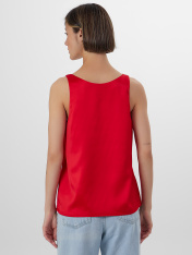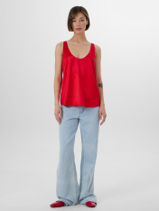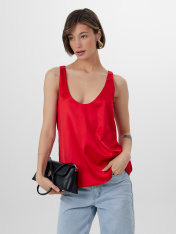 Элегантная блуза на узких бретелях – идеальный выбор для создания стильного и изысканного образа. Прямой, свободный силуэт и V-образная горловина придают модели утончённость и шарм. Перед и спинка на подкладке из основного материала обеспечивают комфорт и дополнительную плотность, а нижние срезы аккуратно обработаны швом вподгибку, что придаёт изделию завершённый вид. Блуза выполнена из прочного и приятного к телу струящегося материала, который красиво подчеркивает изящные линии фигуры. Этот материал не только отлично смотрится, но и дарит ощущение нежности и лёгкости при каждом движении. Такая блуза станет отличным дополнением вашего гардероба, подходящим как для повседневных образов, так и для особых случаев. _x000D_